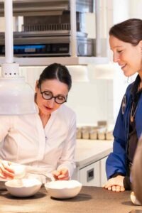 Anne-Sophie Pic et ses équipes ont conçu au Pic Lab des recettes adaptées à l’espace, alliant saveurs intenses et textures stables en apesanteur, tout en respectant les terroirs. En partenariat avec Servair, elles concilient gastronomie et contraintes techniques : conservation, stérilisation, apesanteur, sans sacrifier l’émotion du goût.